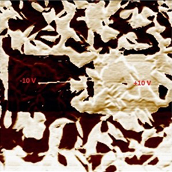 Vertical Piezoresponse Force Microscopy imaging. Phase signal.